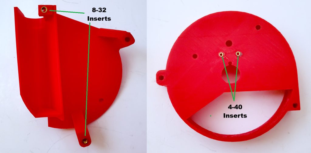 First install two 8-32 and two 4-40 inserts into the Upper and Lower Feeder as shown.