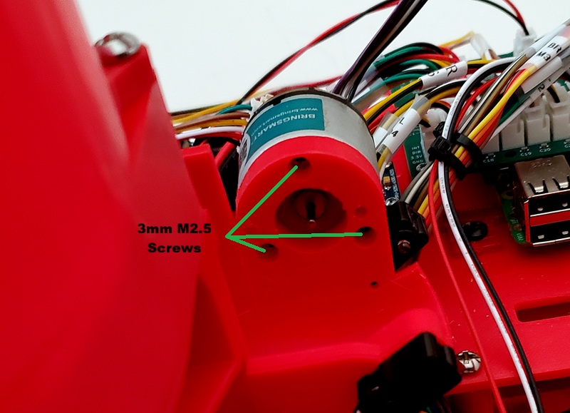 Next mount the Shooter Motor to the Shooter Mount as shown. Warning, using screws that are longer than 4mm can damage the motor (don’t ask me how I know that).