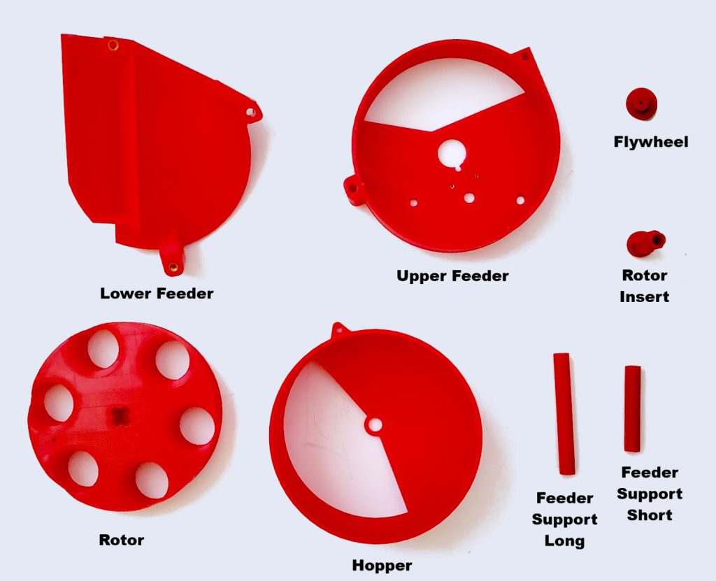 We have modified the Feeder mechanism to hopefully make it more reliable. These are the instructions for assembling this new Shooter/Feeder. If you are using the old Feeder you can find the directions here.